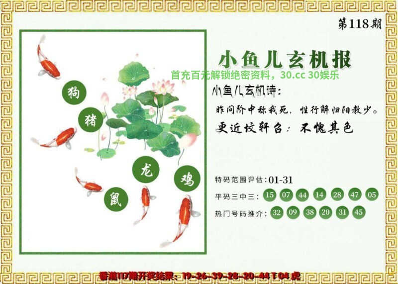 118期 波色:绿 家野:家禽+虎 单双:双 尾:0234679